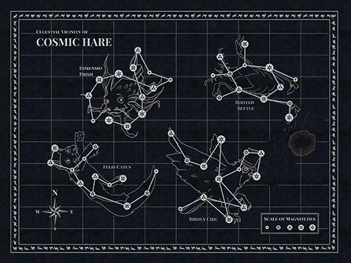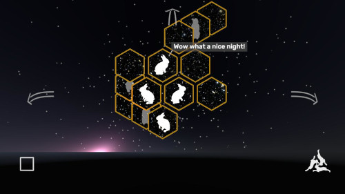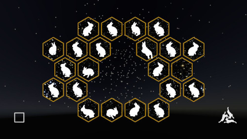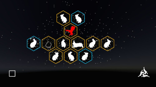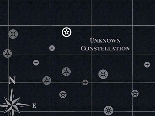 The progress of the game is displayed on a celestial map. Every level is represented by a star and belongs to a constellation. In the beginning, the first constellation is shown without the underlying drawing, labeled as ‘Unknown Constellation’. As the levels are solved the drawings appear and other constellations are unlocked.